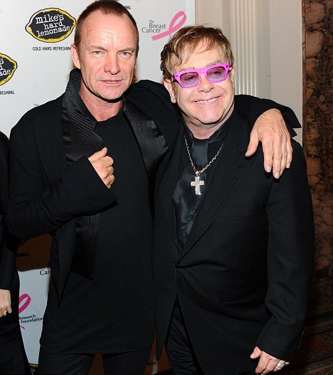 Εκεί ήταν και ο καλός της φίλος Έλτον Τζον, ο οποίος φόρεσε ροζ γυαλιά ειδικά για τη βραδιά και ο επίσης τραγουδιστής Στινγκ.
