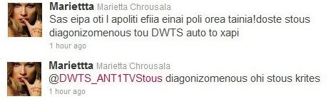 Καρφί για τους διαγωνιζόμενους του DWTS 2, έριξε η Μαριέττα Χρουσαλά και συγκεκριμένα δεν το έριξε το έγραψε!