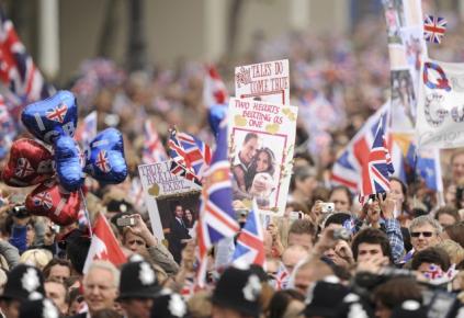 Άνδρες, γυναίκες, παιδιά, γατιά και σκυλιά… όλοι ξεχύθηκαν στους δρόμους για να γιορτάσουν την ένωση του πρίγκιπα Ουίλιαμ με την Κάθριν Μίντλετον με τα ιερά δεσμά του γάμου… με «μελλοντικό φόντο» τον βασιλικό θρόνο!