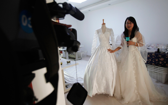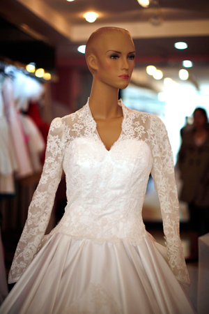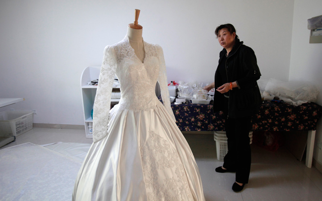 Πιάσανε δουλειά οι Κινέζες μοδίστρες, οι οποίες ξεσηκώνουν από χιλιάδες φωτογραφίες του βασιλικού γάμου της Κέιτ με το Γουίλιαμ το νυφικό της μελλοντικής βασίλισσας της Αγγλίας.