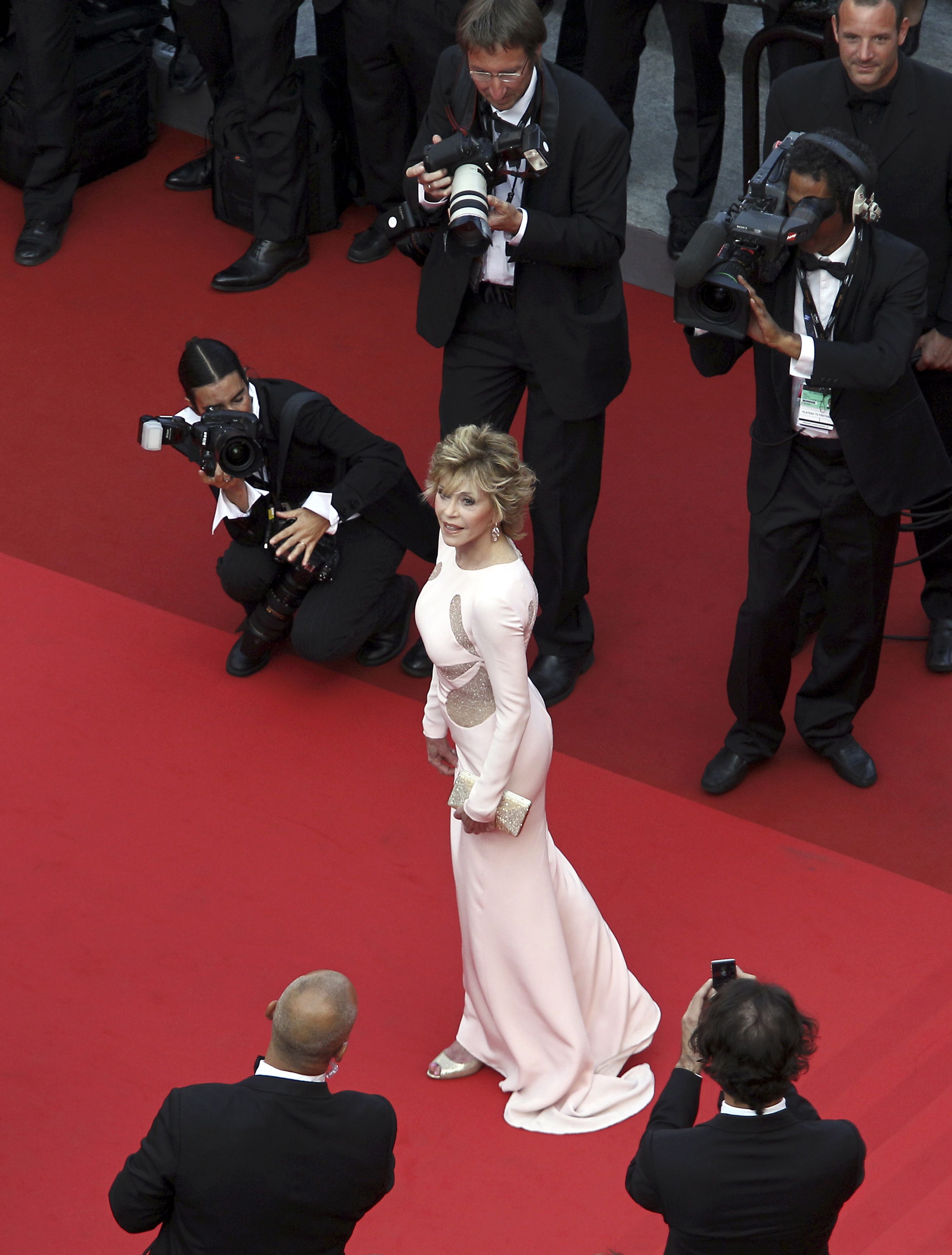 Η εμφάνισή της στο κόκκινο χαλί του Φεστιβάλ των Καννών έκανε τα φλας των φωτογράφων να «πάρουν φωτιά», ενώ το λευκό φόρεμά της αναδείκνυε το σώμα της, αλλά και την πλάτη της, που ήταν ακάλυπτη. Η Jane Fonda είχε παραδεχθεί στο παρελθόν ότι είχε καταφύγει στη λύση της πλαστικής προσώπου, αλλά πλέον θέλει να μεγαλώσει φυσιολογικά, όπως δήλωσε η ίδια.