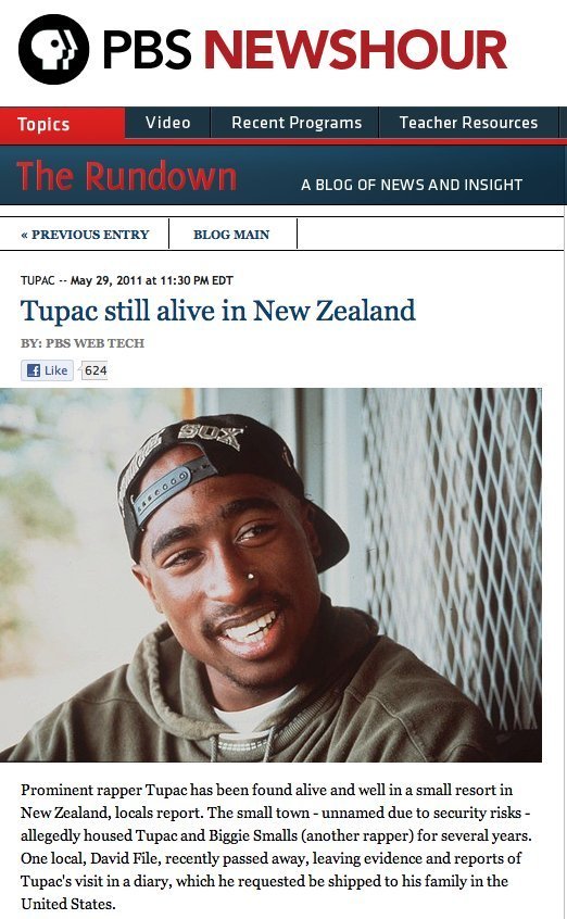 Οι χάκερς «ανέβασαν» την είδηση σε site τηλεοπτικού δικτύου γράφοντας όχι μόνο ότι ο ράπερ είναι ζωντανός, αλλά έχει καταφύγει κιόλας σε άγνωστη περιοχή της Νέας Ζηλανδίας.