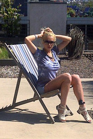 Η 24χρονη ηθοποιός απολάμβανε την ηλιοθεραπεία της στην ταράτσα του σπιτιού της στη Venice Beach του Λος Άντζελες… χωρίς να τη νοιάζει για το σημάδι που θα αφήσει στον αστράγαλό της η μαύρη συσκευή.
