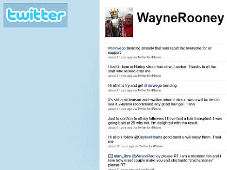 Αργότερα, ο Ρούνεϊ στο Twitter δήλωσε: «Απλά για να το επιβεβαιώσω στους followers μου, έκανα εμφύτευση μαλλιών. Έχανα τα μαλλιά μου στα 25. Γιατί όχι; Είμαι ενθουσιασμένος με το αποτέλεσμα», ενώ πιο μετά πρόσθεσε: «Είμαι ακόμη μελανιασμένος και πρησμένος, αλλά θα είστε οι πρώτοι που θα το δείτε άλλωστε αυτό. Έχει κανείς να προτείνει κανένα καλό ζελέ; Χαχα»