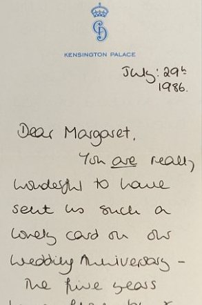 Γράμματα που έστελνε η πριγκίπισσα Νταϊάνα στη φίλη της Margaret Hodge πρόκειται να δημοπρατηθούν στις 21 Ιουνίου. Στις επιστολές αυτές η Νταϊάνα διηγείται μεταξύ άλλων τη ζωή της μετά τη γέννηση του Ουίλιαμ, αλλά και το ταξίδι του μέλιτος που είχε κάνει με τον Κάρολο, όταν παντρεύτηκαν οι δυο τους.