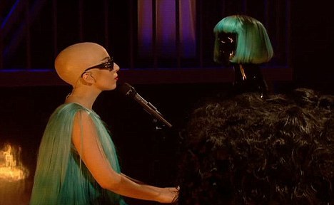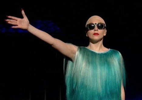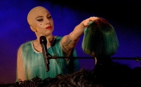 Η Lady Gaga έβγαλε την πράσινη περούκα της, την κρέμασε δίπλα από το πιάνο και στη συνέχεια τραγούδησε το τραγούδι «Hair» από το νέο της άλμπουμ. Στη μέση του τραγουδιού η Gaga έβαλε ξανά την περούκα της και συνέχισε το τραγούδι… με μαλλιά.