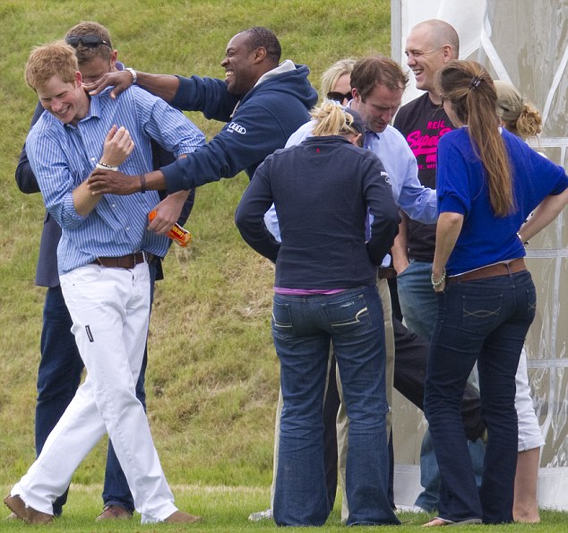 Ο νεαρός πρίγκιπας αστειευόταν με τον μέλλοντα σύζυγο της ξαδέρφης του Zara Phillips και αρχηγό της ομάδας ράγκμπι της Αγγλίας, Mike Tindall.