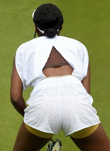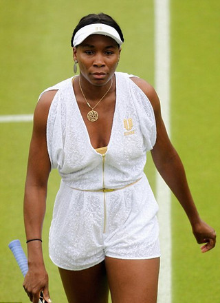Στις παραπάνω φωτογραφίες, η Venus Williams, με ένα συνολάκι από την προσωπική της κολεξιόν… που δεν την κολακεύει καθόλου! Δηλαδή αν δεν το είχε σχεδιάσει η ίδια, πόσο χάλια θα ήταν;