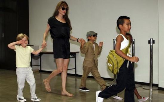 Angelina Jolie μαζί με τα παιδιά της Shiloh (αριστερά), Pax Thien, Maddox (μπροστά δεξιά) και Zahara(πίσω δεξιά)