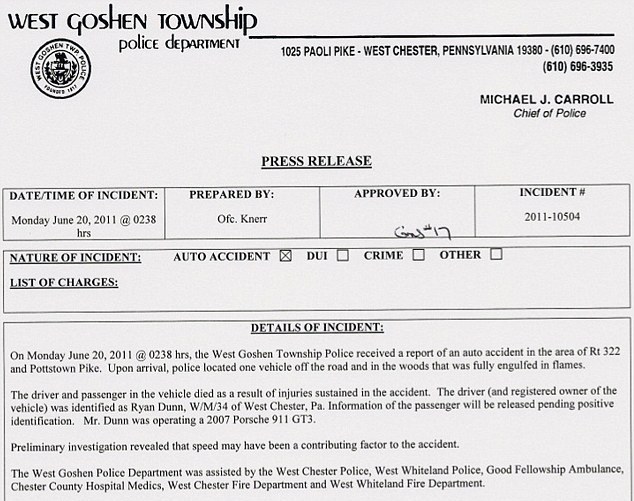 Η Porsche του 34χρονου Dunn «πέταξε» κυριολεκτικά έξω από το δρόμο στοιχίζοντας τη ζωή σε ακόμη ένα άτομο.