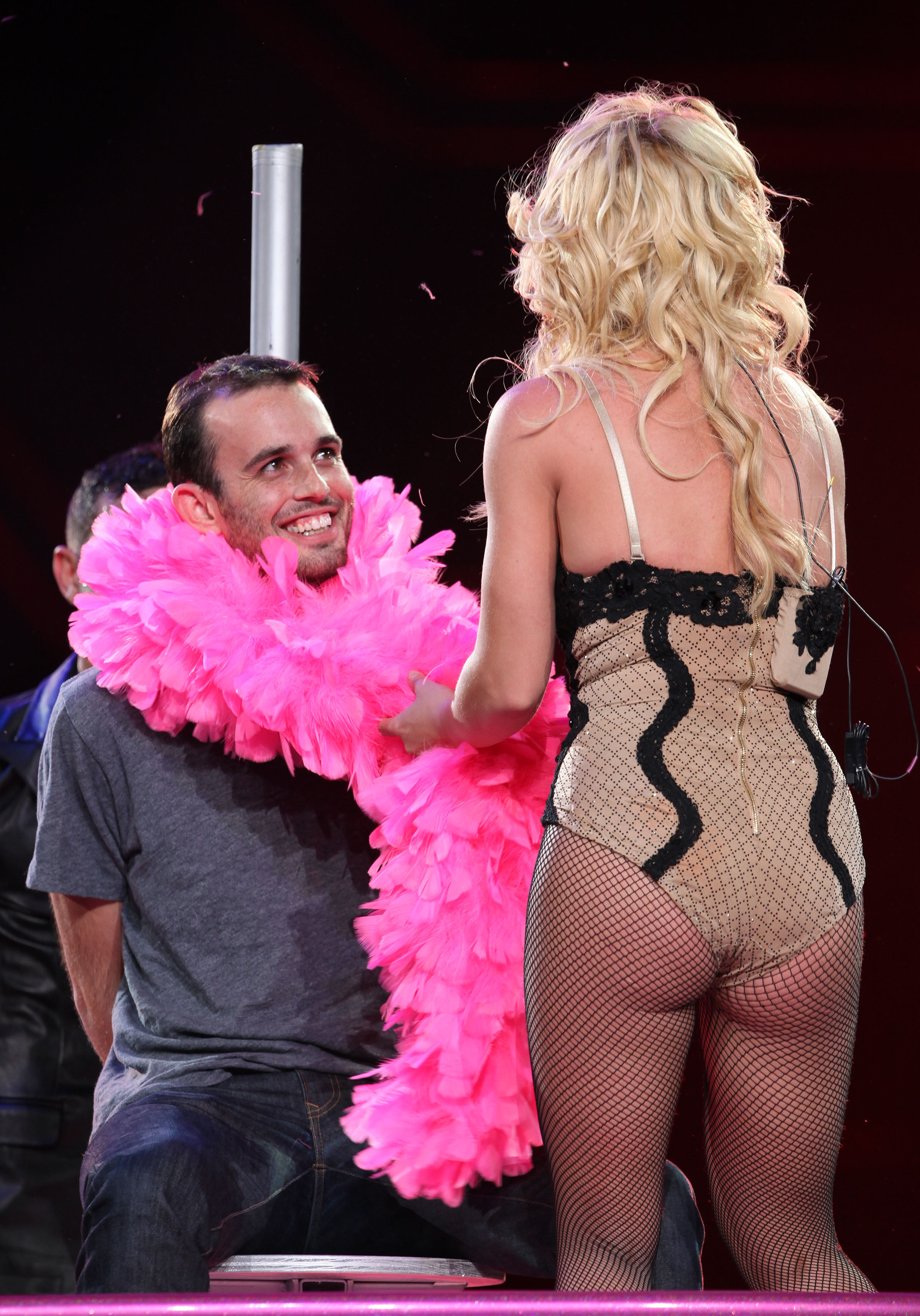 Η Spears ανέβασε στη σκηνή έναν άντρα από το κοινό επάνω και του χάρισε ένα χορό, που δεν θα ξεχάσει ποτέ! Πέρασε τα πόδια της απ΄το κεφάλι του, του χόρεψε, τον πείραξε… Σίγουρα δεν τον άφησε παραπονεμένο!