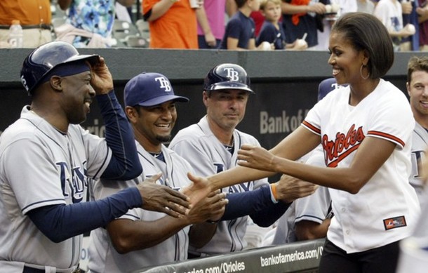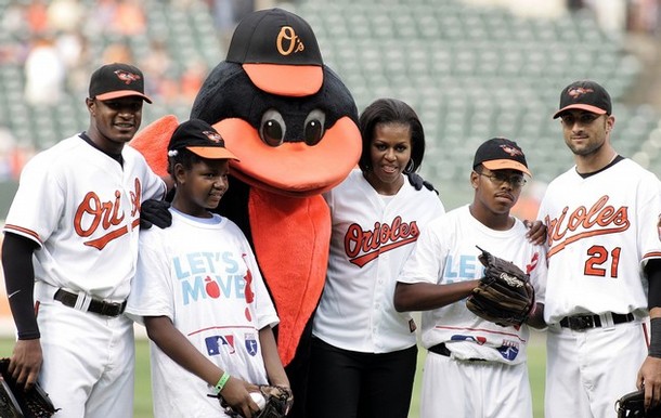 Η Μισέλ Ομπάμα βρέθηκε χτες στο γήπεδο του μπέισμπολ της Βαλτιμόρης. Η επίσκεψη αυτή έγινε στο πλαίσιο της προώθησης της καμπάνιας της «Let’s move» , που έχει ως σκοπό την καταπολέμηση της παιδικής παχυσαρκίας.
