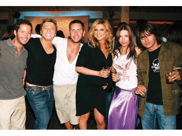 Με το ζεύγος Ευρυδίκη-Κοργιαλά, το Γιώργο Μαζωνάκη, τον Τάκη Ζαχαράτο και τον Χρύσανθο Πανά στο Island.