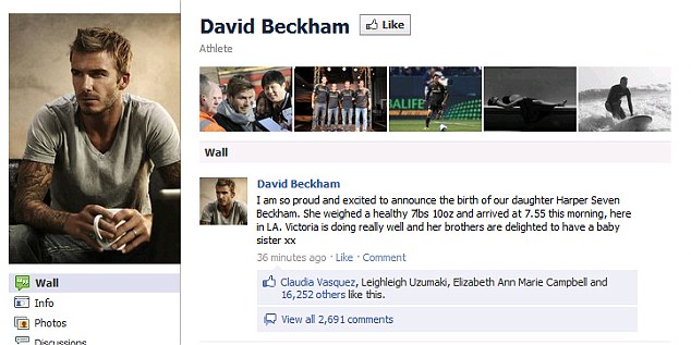 «Είμαι τόσο περήφανος και ενθουσιασμένος που σας ανακοινώνω ότι γεννήθηκε η κόρη μας, Harper Seven Beckham», έγραψε μεταξύ άλλων λέγοντας ότι είναι τόσο αυτή, όσο και η Victoria είναι υγιείς, ενώ τα αγόρια έχουν ενθουσιαστεί που απέκτησαν αδερφή.