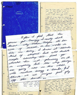 Σε άλλη σελίδα γράφει: «Συχνά πιστεύω ότι τρελαίνομαι. Δεν ξέρω το γιατί. Ίσως φταίει το σχολείο ή ο κόσμος που ζούμε».