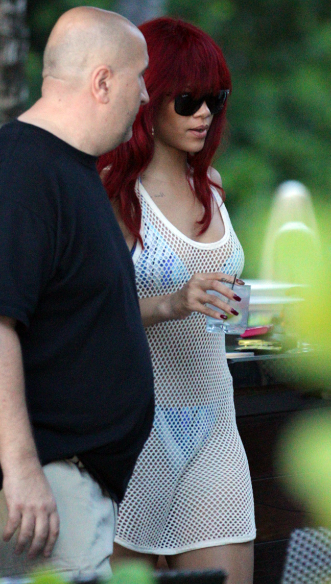 Δεν τους έκανε όμως τη χάρη να απολαύσουν και τις «χορταστικές» καμπύλες της στην πισίνα, όπου εμφανίστηκε με ένα διχτυωτό φορεματάκι πάνω από το καυτό μπικίνι της!