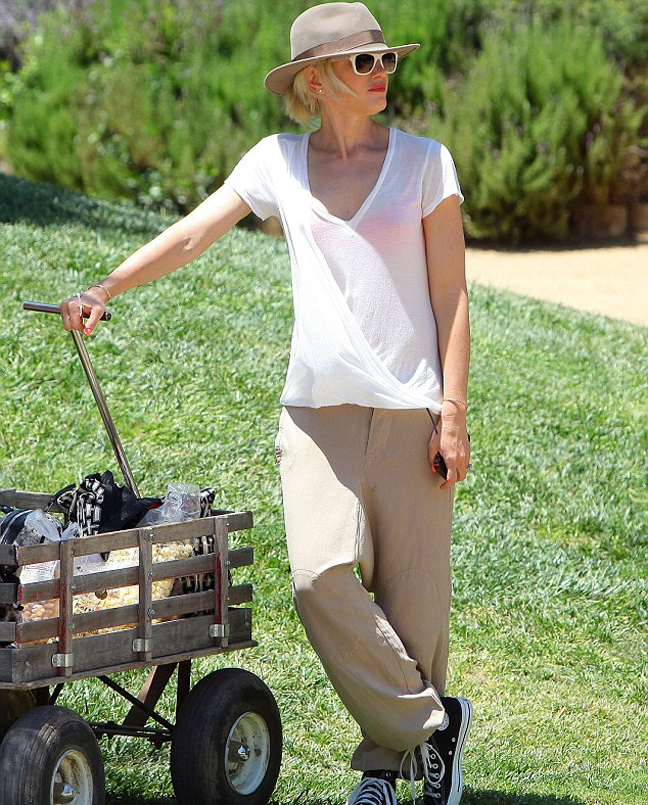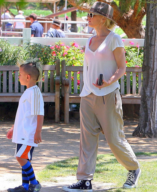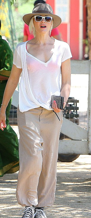 Παρότι επέλεξε πολύ άνετα ρούχα για να πάει μια βόλτα με τα παιδιά της στη φάρμα και δεν την είδαμε με ψηλοτάκουνα όπως κάνουν άλλες σταρ (δείτε σχετικό θέμα) η Gwen Stefani δεν παρέλειψε να επιλέξει ένα πολύ στιλάτο καπέλο για να ολοκληρώσει το σέξι λουκ της φυσικά δεν αποχωρίστηκε ούτε το κόκκινο κραγιόν της!
