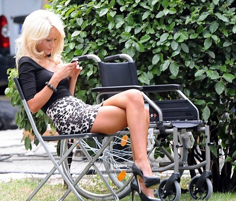Η νεαρά τον συνόδευσε στη Μαδρίτη, όπου πραγματοποιούνται τα γυρίσματα της νέας του ταινίας «Brain Drain». Τον περίμενε υπομονετικά να τελειώσει τις πρόβες, να διαβάσει το σενάριο… με τη βοήθεια των γυαλιών πρεσβυωπίας του και (τυχαίο;) καθήμενη δίπλα σε μια αναπηρική καρέκλα!