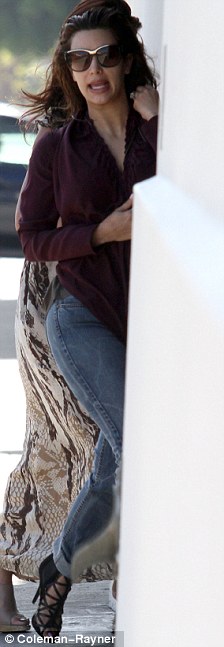 Φορώντας ένα μακρύ τζιν παντελόνι, μια μακριά πουκαμίσα και γυαλιά που κάλυπταν μεγάλο μέρος του προσώπου της, έφυγε από φωτογράφηση που πραγματοποιήθηκε στο Λος Αντζελες.
