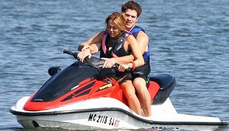 Η σταρ περνούσε πάρα πολύ ωραία ενώ έπαιρνε στην αγκαλιά της το καινούργιο κουτάβι της. .Αργότερα,πήγε στο τζετ σκι με τον αγόρι της, ο οποίος γυρνάει μια καινούργια ταινία, the Hunger Games.