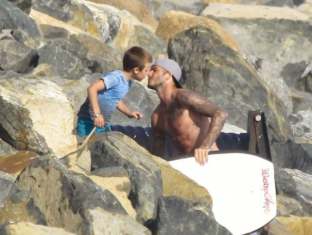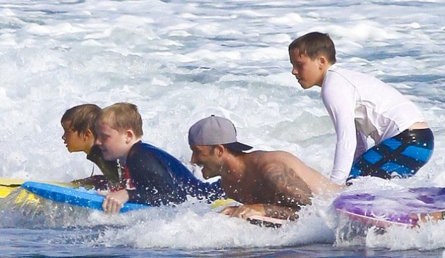 Ο David πέρασε αρκετό χρόνο στην παραλία με τους γιους του δείχνοντας πόσο στοργικός πατέρας είναι, αφήνοντας την Victoria στο σπίτι με τη νεογέννητη κόρη τους.