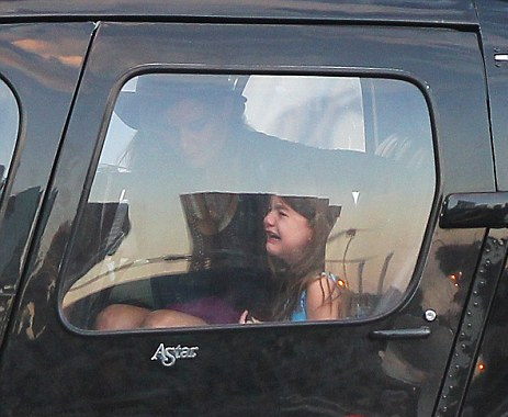 Παρά τα παιχνίδια που της είχε ψωνίσει η μαμά της, Katie Holmes, δεν της αρκούσε, μπαίνοντας στο ελικόπτερο έδειχνε πάρα πολύ στεναχωρημένη.