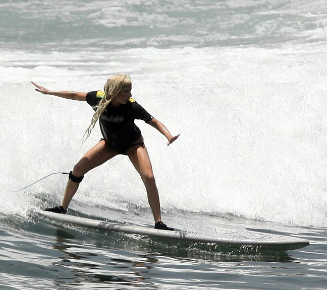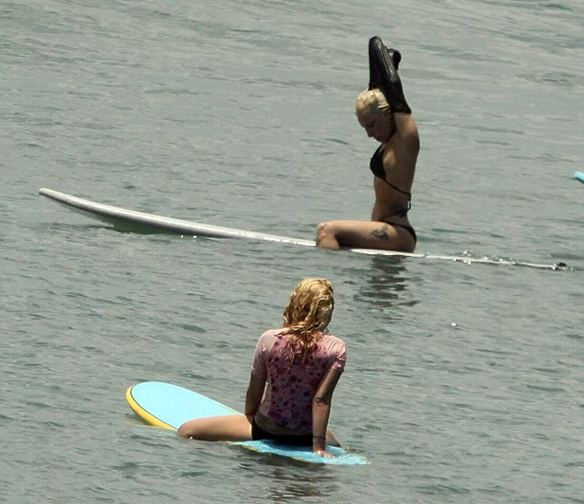 Κάνοντας τα πρώτα της μαθήματα στο surfing τσάκωσε ο φακός την 25χρονη Lady Gaga, η οποία δε φαίνεται και να δυσκολεύεται ιδιαίτερα.