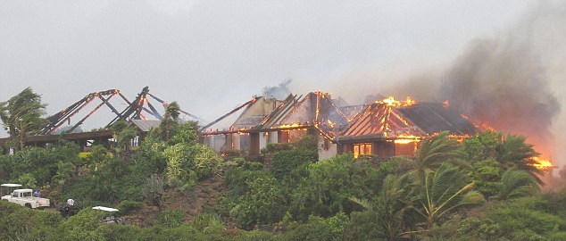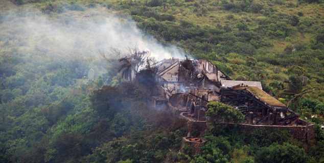 Καμένα ερείπια είναι ό,τι απέμεινε από το αξίας 60 εκατ. δολαρίων πολυτελέστατο κτιριακό του συγκρότημα στην Καραϊβική, όταν αυτό χτυπήθηκε από κεραυνό, λόγω του τυφώνα Irene που πλήττει την περιοχή και ξέσπασε φωτιά.