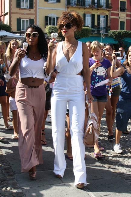 Φορώντας μια άσπρη θηλυκή φόρμα που άφηνε ακάλυπτη την πλάτη της έκανε βόλτα στην ιταλική πόλη και δοκίμασε το τοπικό παγωτό.