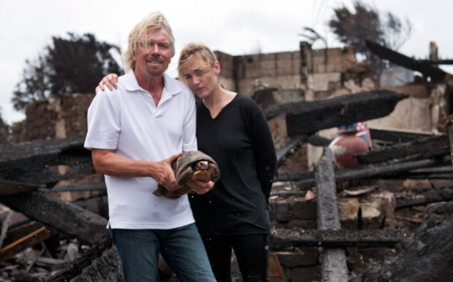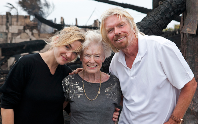 Η διάσημη ηθοποιός Kate Winslet ποζάρει στο φωτογραφικό φακό με τον καλό της φίλο Sir Richard Branson, ο οποίος της χρωστά αιώνια ευγνωμοσύνη γιατί τον βοήθησε να σώσει τη μητέρα του Eve από τη φλεγόμενη έπαυλή του, σε ιδιωτικό νησί στις Βρετανικές Παρθένες Νήσους.