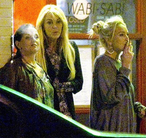 Κατά την διάρκεια του φαγητού η σταρ βγήκε πάρα πολλές φορές έξω για να καπνίσει και στο τέλος του δείπνου αντάλλαξε ένα στοργικό φιλί με την μαμά της.