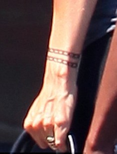 Εντοπίστηκε η ηθοποιός να φτάνει στα Digital Domain Studios. Τον καρπό της διακοσμούσε κάτι που έμοιαζε με δύο αλυσίδες από χένα, τυλιγμένες γύρω από τον καρπό της.