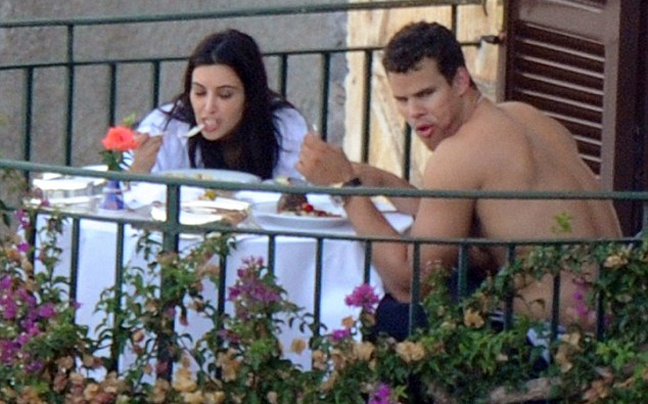 Σε φωτογραφίες του ζευγαριού στο ξενοδοχείο όπου διαμένουν, η «τηλεσταρ» φίλα συνέχεια τον Kris Humphries ξαπλωμένη πάνω του.