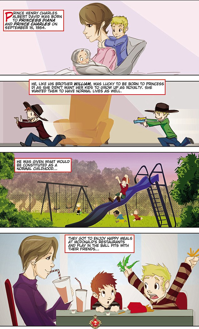 Οι δημιουργοί του ισχυρίζονται ότι δε θα του «χαϊδέψουν τα αυτιά» και πως μέσα στις σελίδες του κόμικ έχουν συμπεριλάβει κάθε γνωστή λεπτομέρεια από τη ζωή του άτακτου πρίγκιπα, όπως για παράδειγμα τις «επισκέψεις» του σε στριπτιζάδικα, την επιλογή του να ντυθεί με στολή Ναζί σε πάρτι-μασκέ και τις συναναστροφές του με τους παπαράτσι.
