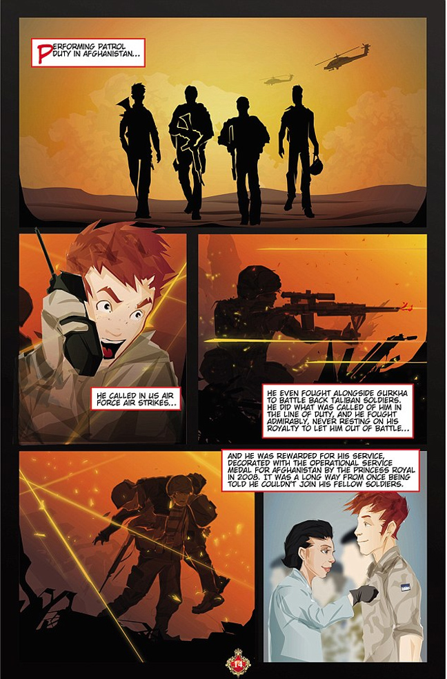 Μέσα σε 32 σελίδες, υπό τον τίτλο «Το άτακτο παιδί», ξετυλίγεται η ζωή του βρετανού γαλαζοαίματου από τα παιδικά του χρόνια στο παλάτι, το διάστημα που υπηρετούσε στο Αφγανιστάν και πολεμούσε τους Ταλιμπάν και τη μετεξέλιξή του σε έναν τολμηρό πιλότο ελικοπτέρου!