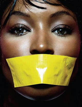 Την φίμωσαν με κίτρινη ταινία για τις ανάγκες μιας φωτογράφισης στο περιοδικό και το μοντέλο πόζαρε στη φωτογραφικό φακό άψογα.
