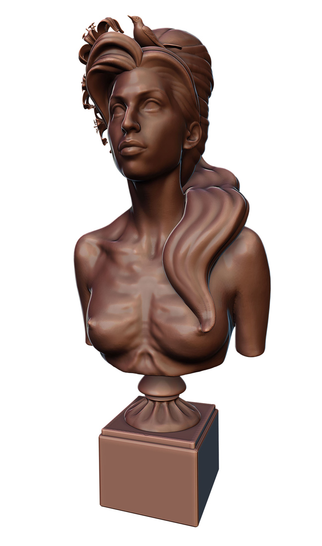 Από την προτομή αυτή απουσιάζουν τα piercings της τραγουδίστριας, καθώς και τα τατουάζ της, ενώ στην κορυφή του έχει ένα πουλί και μερικές κρίνα.