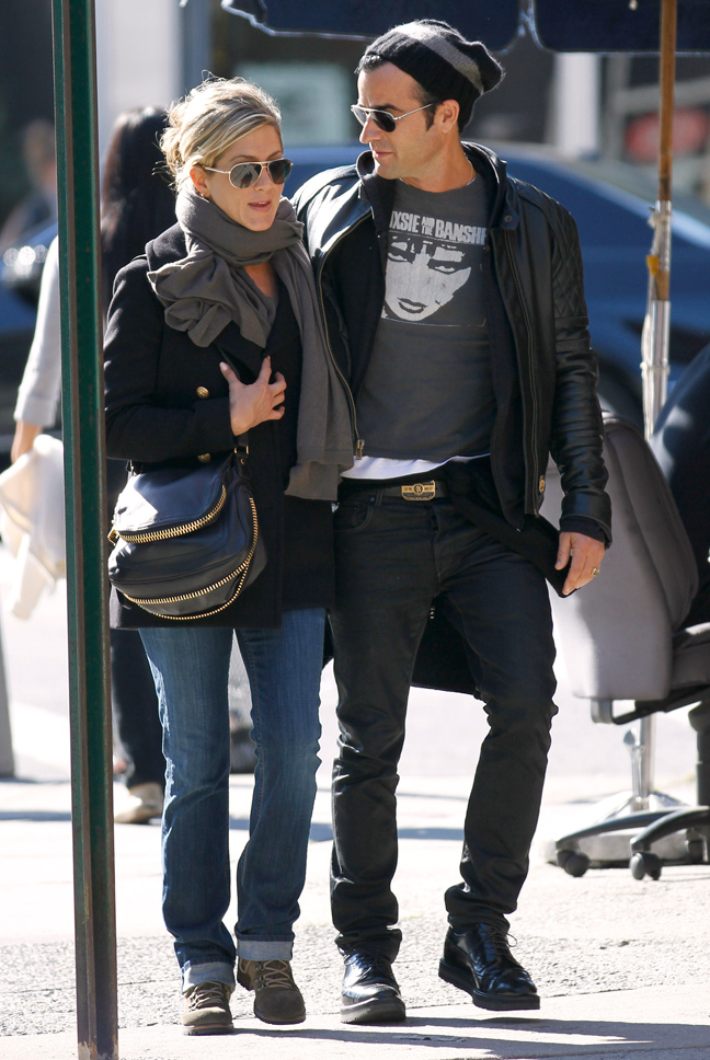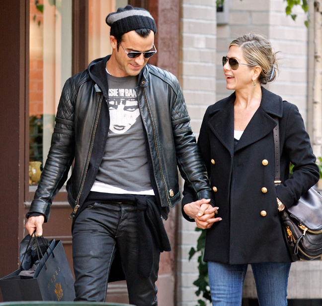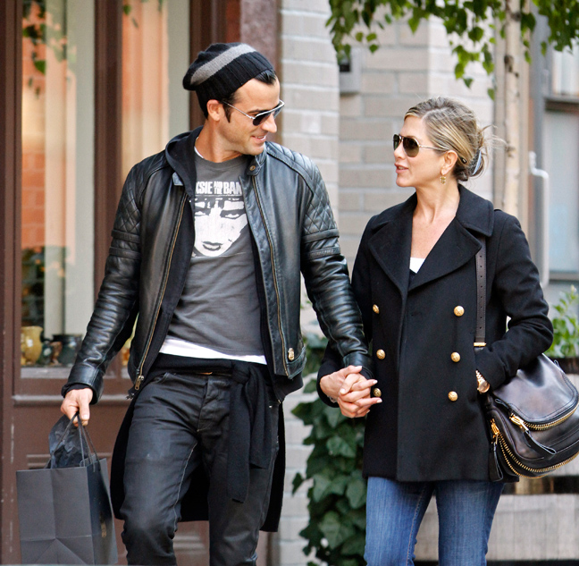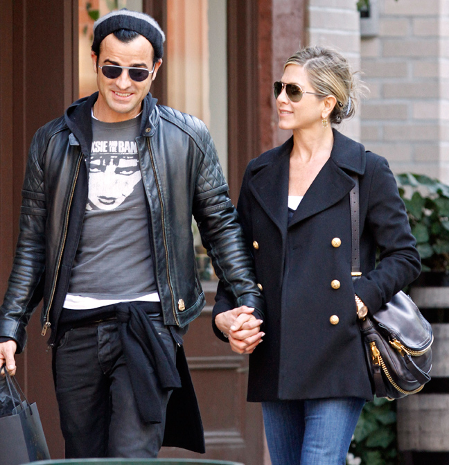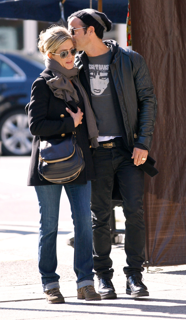 Η ηθοποιός η οποία αυτή την περίοδο είναι πιεσμένη συναισθηματικά, λόγω του προβλήματος υγείας που αντιμετωπίζει η μητέρα της, αφενός δεν σχολίασε τίποτα από όσα είπε ο Brad και αφετέρου δείχνει να απολαμβάνει τη σχέση της με τον Justin Theroux. Οι φωτογράφοι τους απαθανάτισαν στο Manhattan σε πρωινή βόλτα για περπάτημα και ψώνια. H Jennifer έδειχνε χαρούμενη στο πλευρό του συντρόφου της, ο οποίος ήταν ιδιαίτερα προστατευτικός και τρυφερός. Περπατούσαν πιασμένοι χέρι- χέρι και συμπεριφέρονταν σαν ερωτευμένοι έφηβοι.