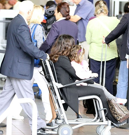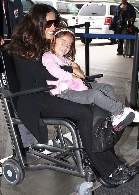 Σε καροτσάκι εμφανίστηκε η γνωστή ηθοποιός Salma Hayek στο αεροδρόμιο του Λος Άντζελες. Όσοι την είδαν αρχικά ανησύχησαν μήπως η ηθοποιός αντιμετώπιζε κάποιο πρόβλημα υγείας, αλλά η ίδια ήταν μια χαρά και ιδιαίτερα χαρούμενη καθώς εκείνη την ημέρα έκλεινε τα τέσσερα η κόρη της.