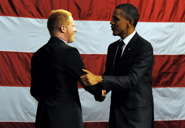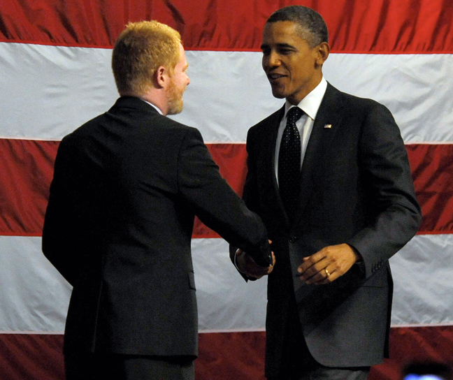 Ο Ομπάμα αγκάλιασε επί σκηνής τον ηθοποιό Jesse Tyler Ferguson, ο οποίος είναι γνωστός από την συμμετοχή του στην βραβευμένη με Emmy σειρά “Modern Family”.
