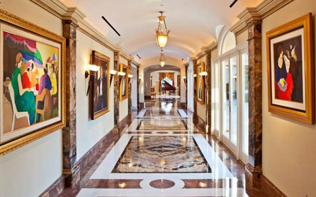Αφού περάσετε από τις πύλες της πολυτελέστατης έπαυλης στο Μπέβερλι Χιλς και διασχίσετε ένα λιθόστρωτο δρόμο 121 μέτρων θα βρεθείτε στην είσοδο της art deco, ευρωπαϊκής αρχιτεκτονικής βίλας με τα τεράστια παράθυρα.