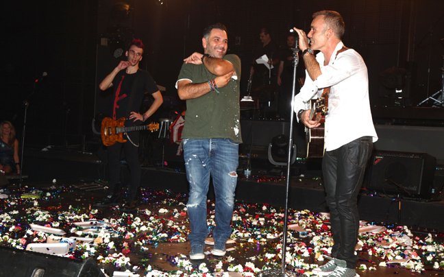 Ο παρουσιαστής σηκώθηκε στην πίστα και έπιασε μικρόφωνο ενώ δεν παρέλειψε να χορέψει και ζεϊμπέκικο.