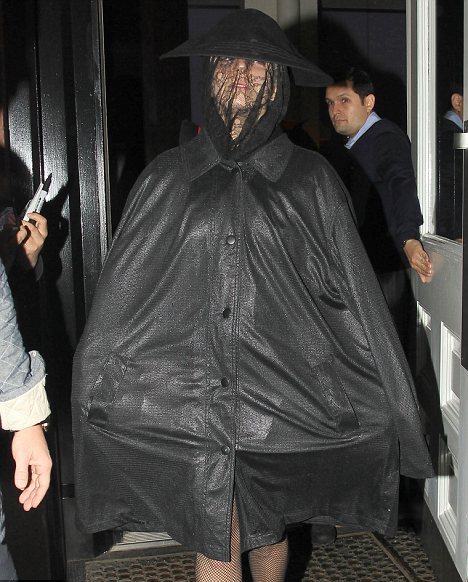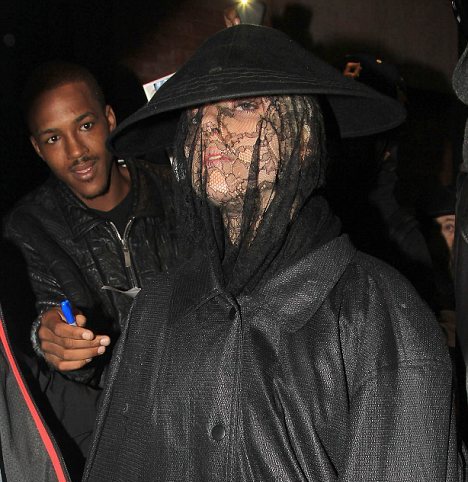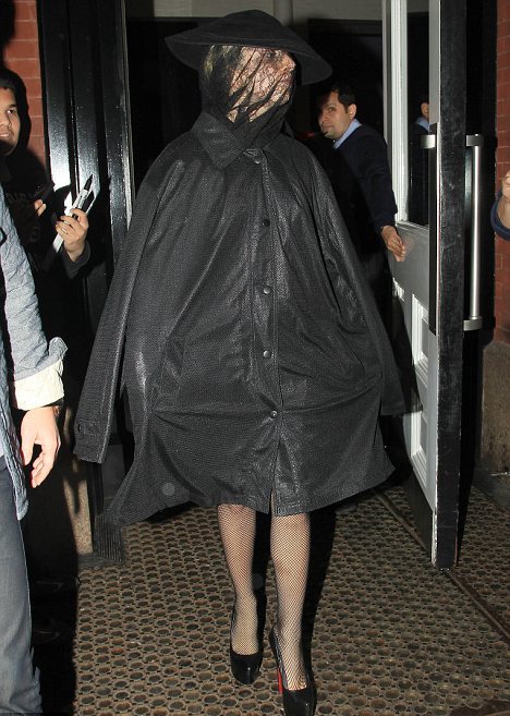 Η 25χρονη τραγουδίστρια βγήκε από το ξενοδοχείο της στη Νέα Υόρκη, φορώντας ένα πολύ μεγάλο μαύρο δερμάτινο που θύμιζε όντως σακούλα σκουπιδιών… και για να ολοκληρώσει το λουκ έβαλε και ένα μαύρο καπέλο και άφησε ένα δαντελένιο πέπλο να καλύψει το πρόσωπό της!