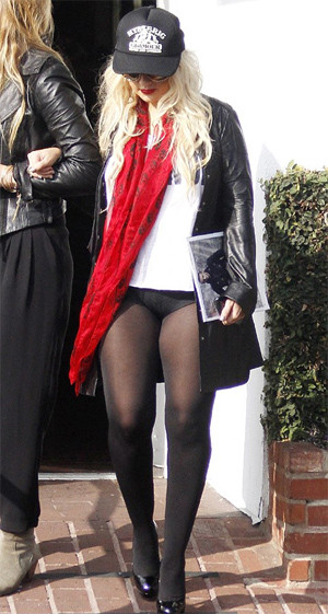Την Δευτέρα η Christina Aguilera εμφανίστηκε χωρίς παντελόνι. Το γεγονός αυτό συζητήθηκε αρνητικά μάλλον όμως δεν την ενδιαφέρει και πολύ. Γιατί έκανε άλλη μια εμφάνιση με καλτσόν, μάλιστα η μπλούζα αυτή την φορά ήταν πιο κοντή και φαινόταν το μαύρο της εσώρουχο!