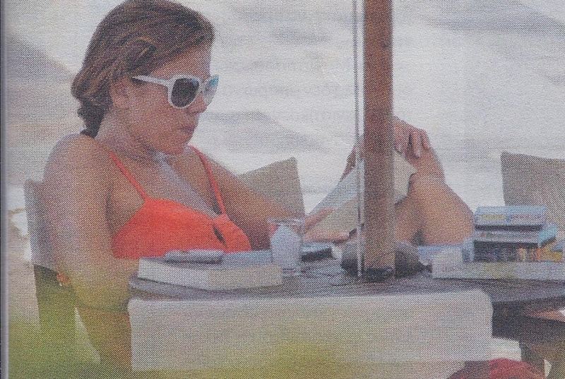 Η Ευγενία διαβάζει ένα βιβλίο στη σκιά δίπλα στην πισίνα του ξενοδοχείου όπου διαμένει, ενώ την ίδια ώρα ο Άδωνις Γεωργιάδης απολαμβάνει το μπάνιο του μαζί με τα παιδιά τους.