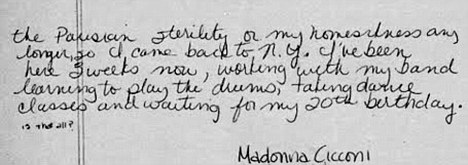 Η τρισέλιδη επιστολή, που δεν έχει δει ποτέ ξανά το φως της δημοσιότητας, περιείχε την εξομολόγηση της νεαρής τότε Μαντόνα, η οποία δήλωνε ούτε λίγο, ούτε πολύ ότι ήθελε να γίνει καλόγρια και πως μισούσε το σχολείο.