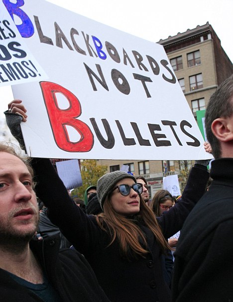 Η 29χρονη σταρ, που η περιουσία της υπολογίζεται στα 58 εκατ. δολάρια, εθεάθη ανάμεσα στους διαδηλωτές να φωνάζει συνθήματα και να κρατά πλακάτ.