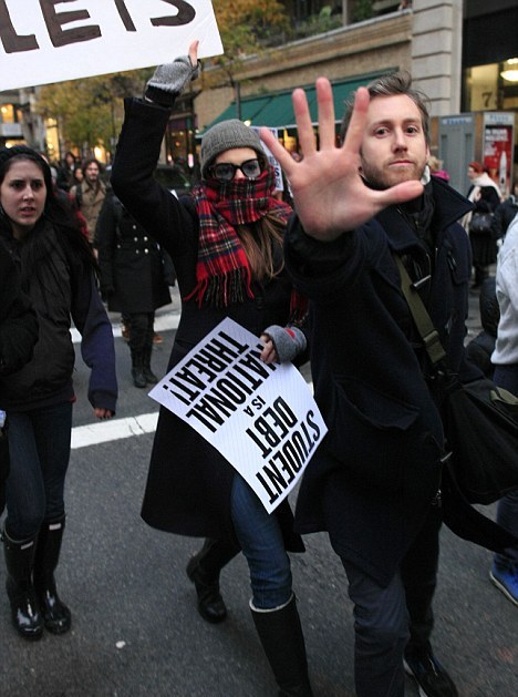 Η Anne Hathaway συμμετείχε στις διαδηλώσεις του κινήματος «Occupy Wall Street» μαζί με εκατοντάδες άλλους διαδηλωτές στο Union Square του Μανχάταν.