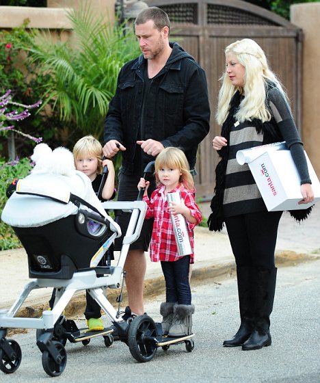 Η Tori Spelling φαίνεται να έχει ιδιαίτερη αγάπη για το καινούριο μέλος της οικογένειας της, την μικρή Hattie. Δεν σταμάτησε να της χαμογελάει και να παίζει μαζί της κατά την διάρκεια μιας οικογενειακής βόλτας.
