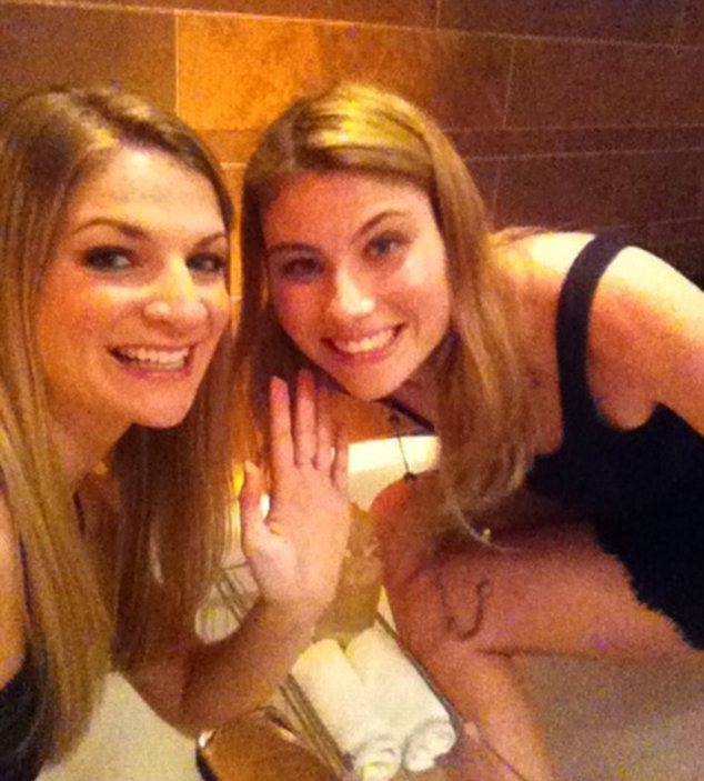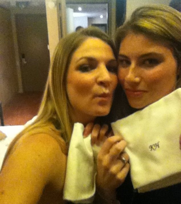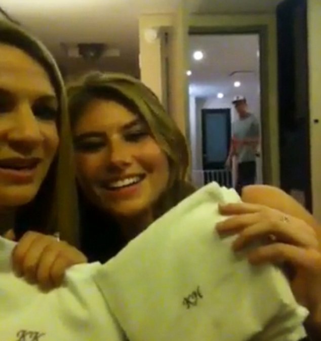 Σε μία από τις φωτογραφίες οι δύο νεαρές κοπέλες φαίνεται να κρατάνε μια πετσέτα με τα αρχικά του άλλοτε ευτυχισμένου ζευγαριού, ενώ ο Kris φαίνεται στο βάθος.